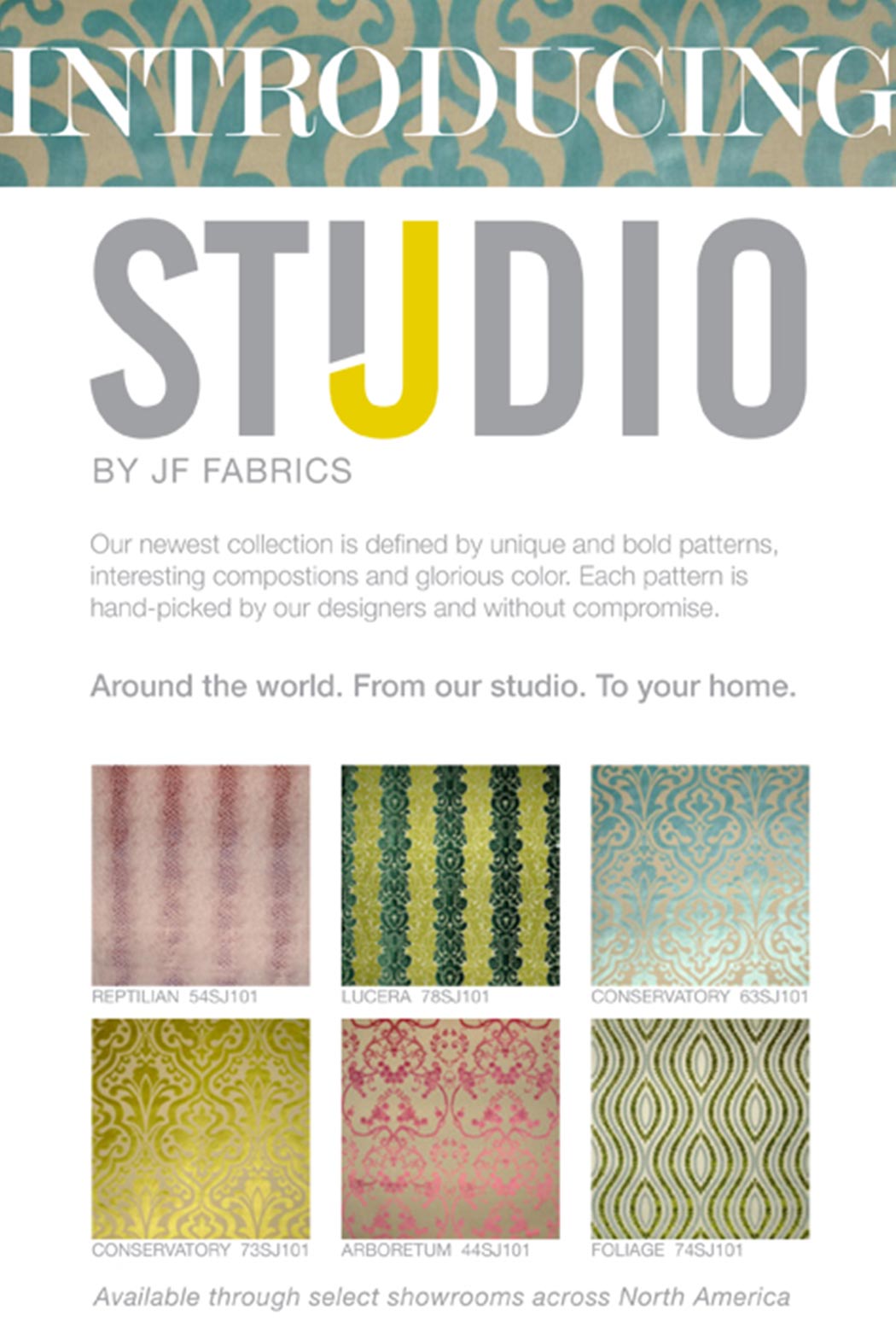 JF Fabrics presents Studio J, a high end collection now on display at Designers Resource's showroom, visit us and get a close look to it.